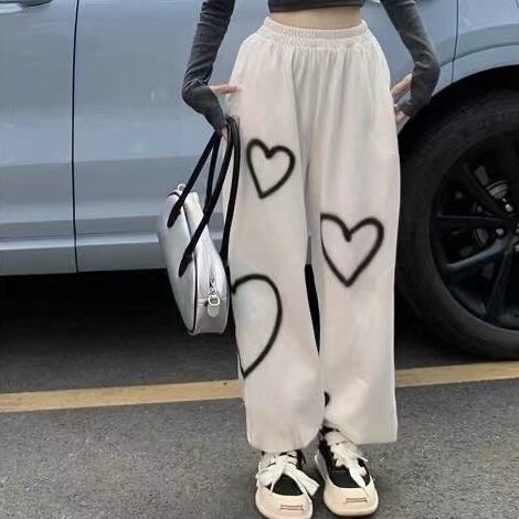 スェットパンツ ハイウエスト ハートペイント ジョガーパンツ デザイン レディース 全3色