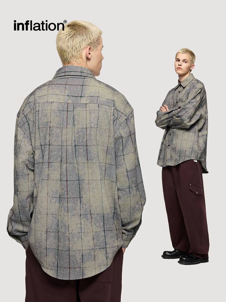 メンズ レトロ風 チェック柄 長袖 シャツ 男女兼用 ストリート系 アウター 春秋 2024新作★