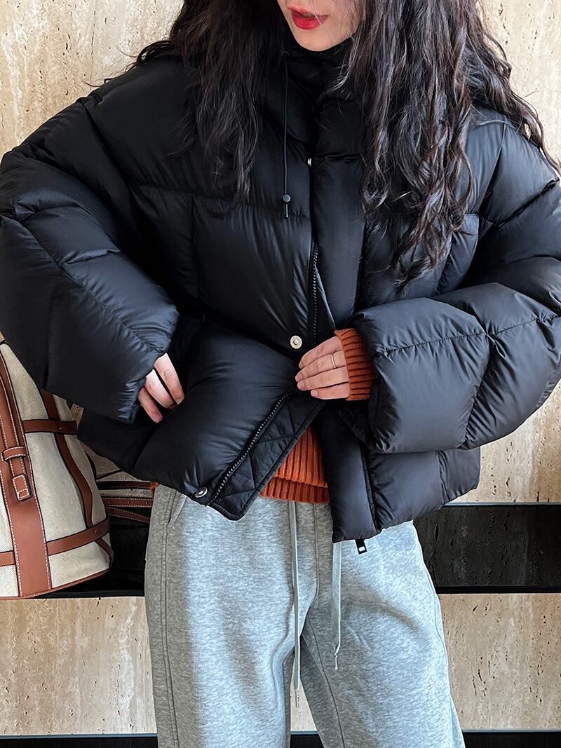 レディース ダウンジャケットトップス 保温性 無地 Uネック 2色 韓国風 長袖 シンプル