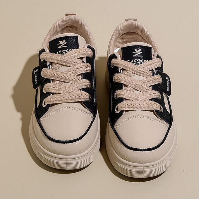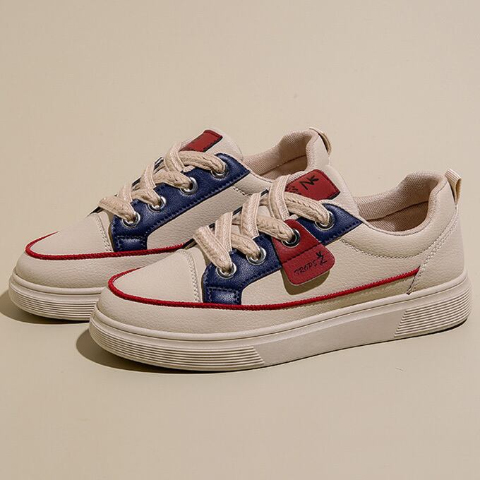 新作 レディース レトロ感 バイカラー 配色 スリム スニーカー 紐靴 シューズ レザー調