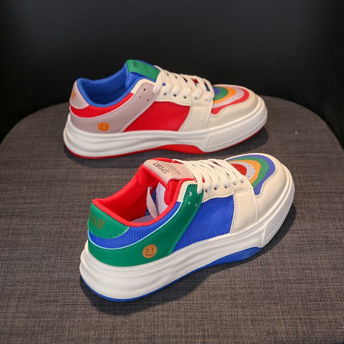 新作 レディース レトロ感 バイカラー 配色 スニーカー 紐靴 シューズ レザー調 メッシュ