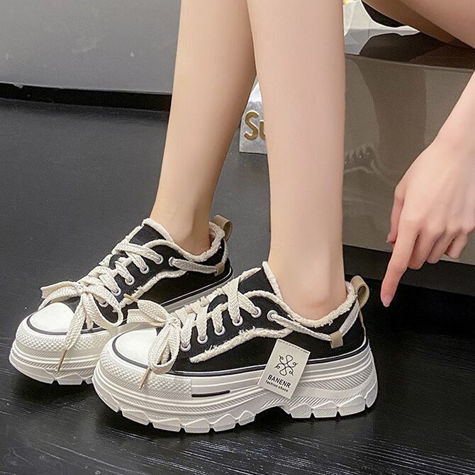 新作 フリンジスニーカー ボリューム 厚底 ローカット カジュアル 美脚スニーカー 5CM