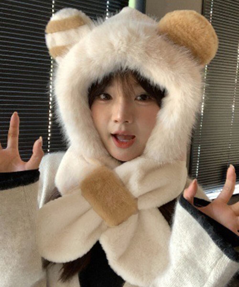 レディースくま耳帽子 秋冬 ボア帽子 マフラー帽子 大人可愛いアニマル帽子 あったかグッズ 女性 プレゼント 防寒グッズ