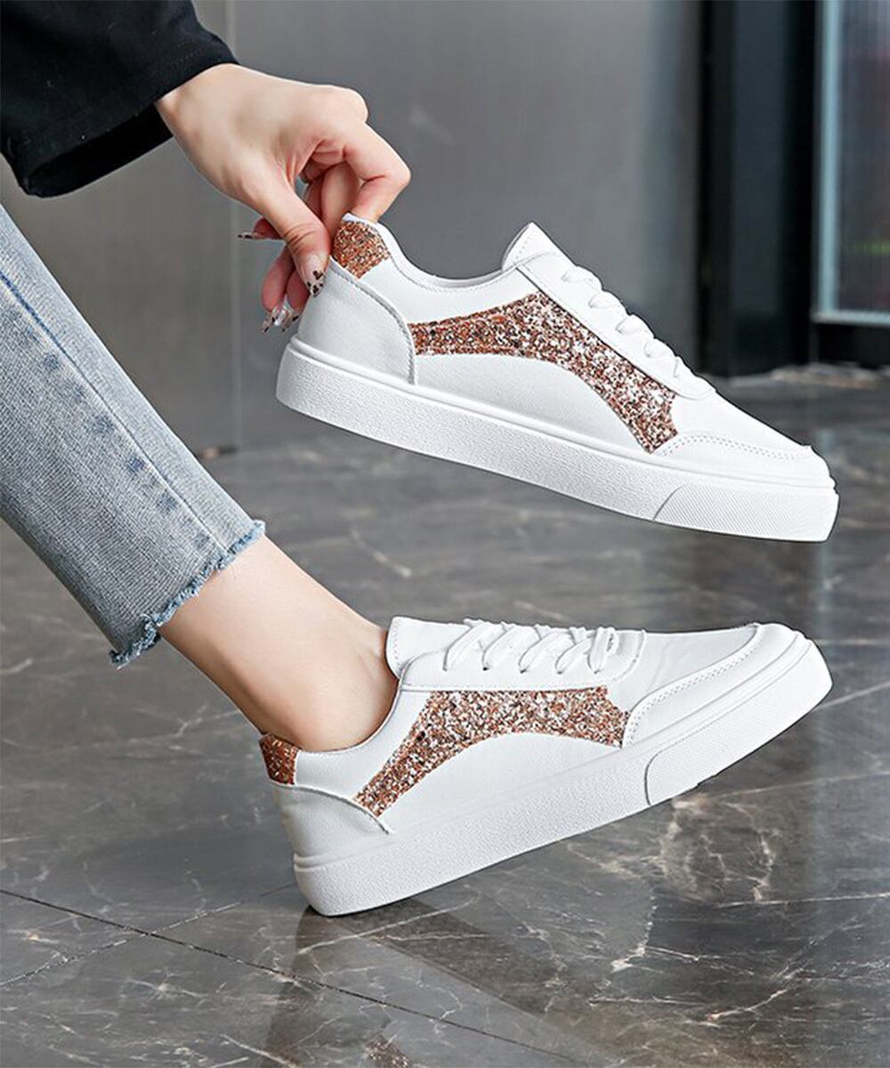 キラキラしたスパンコールが気分を上げてくれるフラットソールスニーカー