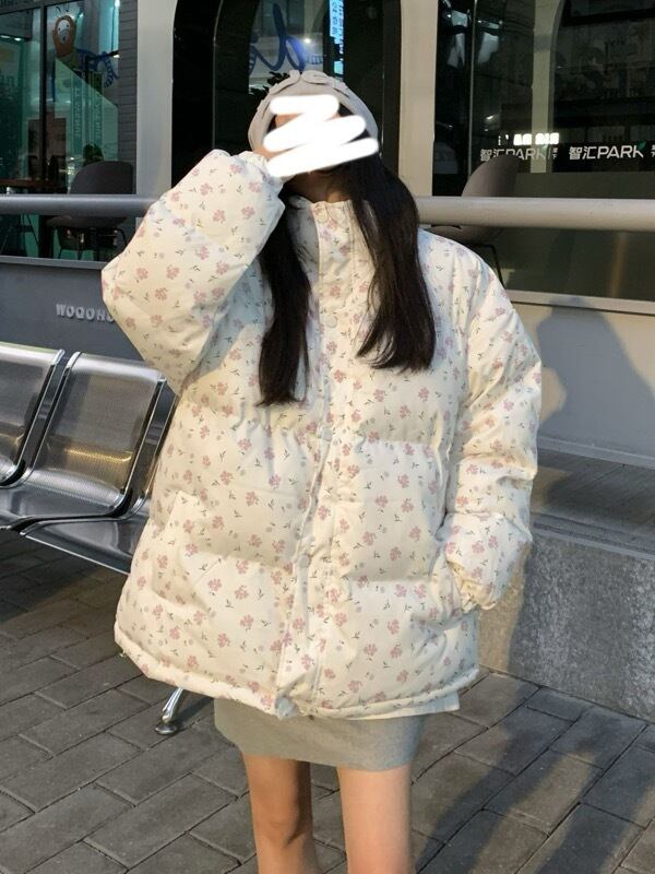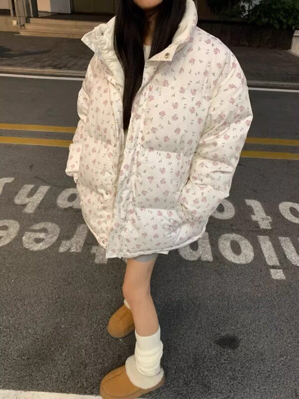 トップス アウター ジャケット 中綿ダウン ブルゾン 厚手 プリント レディース